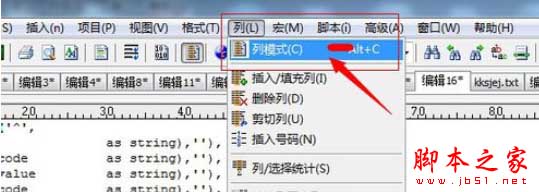 列模式跟正常編輯差不多,就是字體小了一些,還有就是鼠標可以從上到下豎排選擇了,怎么切換到列模式呢,有3個方法