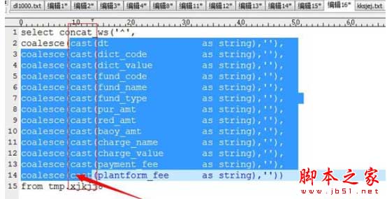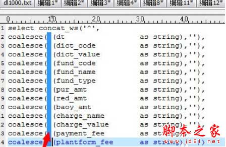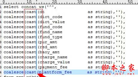 這段sql放數據庫里肯定報錯,因為少了個cast關鍵字,那么怎么為這幾行同時加上cast這幾個字呢?我們就要切換到列模式,列模式樣式如下