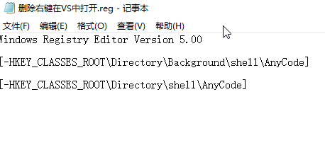 Windows Registry Editor Version 5.00[-HKEY_CLASSES_ROOT/Directory/Background/shell/AnyCode][-HKEY_CLASSES_ROOT/Directory/shell/AnyCode]