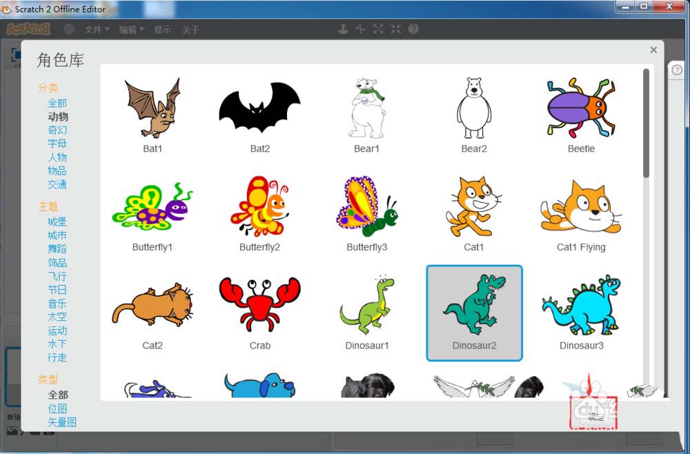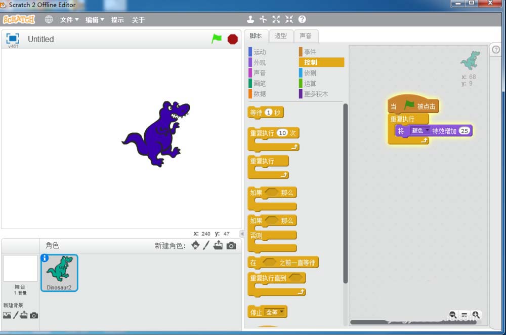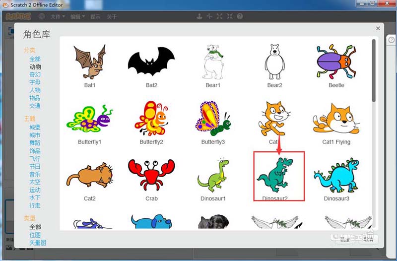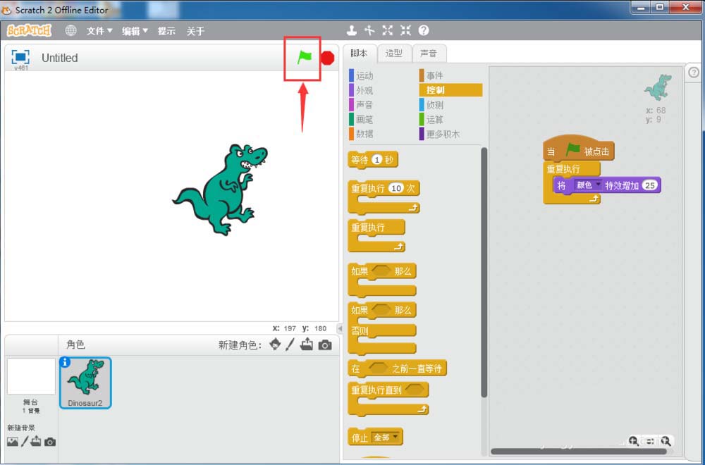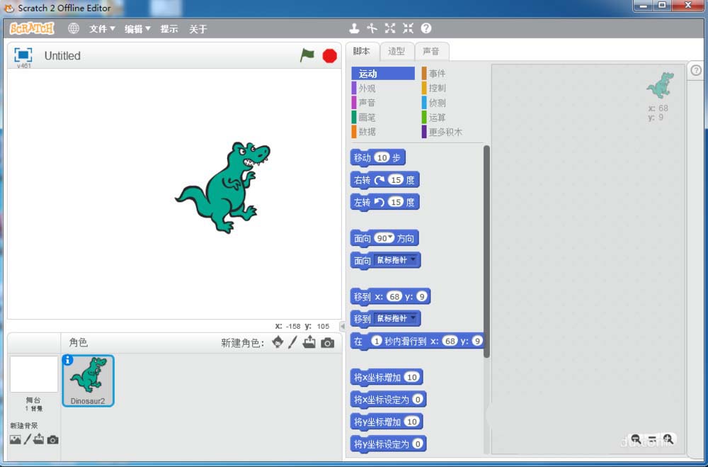 7、將恐龍?zhí)砑拥搅藄cratch舞臺上;