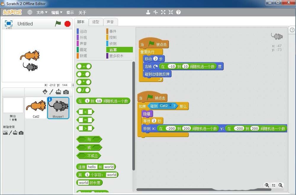 以上就是scratch制作貓捉老鼠的小程序的教程,希望大家喜歡,請繼續關注武林網。