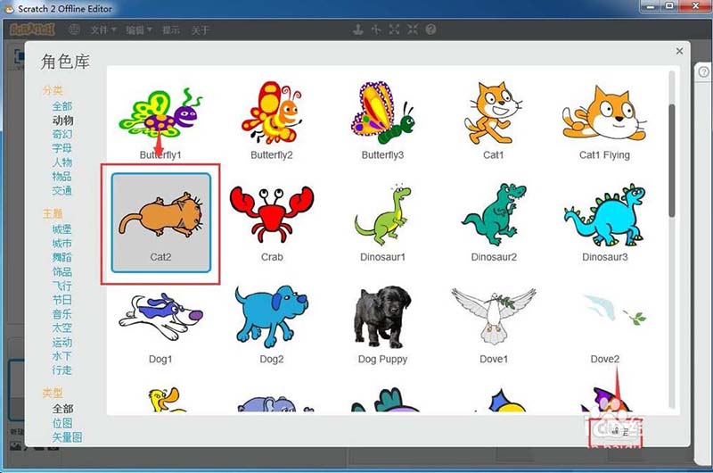 5、在動物類別找到需要的貓的圖片,選中它后按確定;