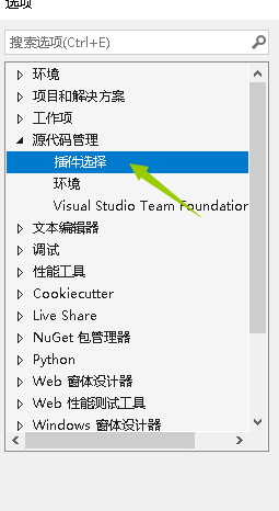 4、進入到選項窗口中,點擊箭頭所指的源代碼管理,進入到相關頁面。