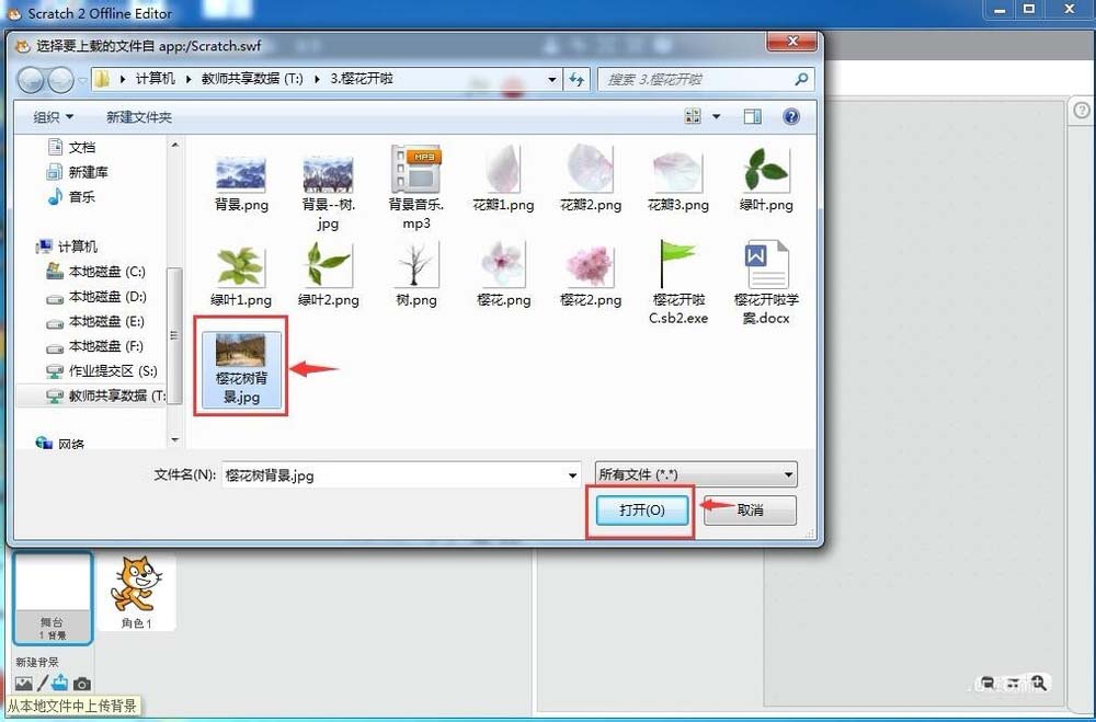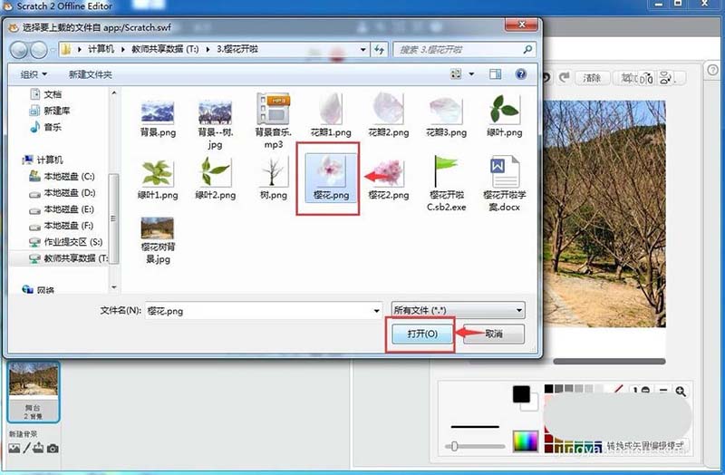 8、找到櫻花圖片,選中后按打開,添加成功櫻花角色;