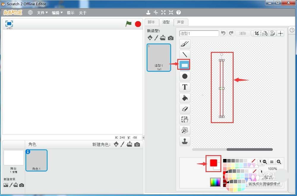 4、定義好顏色,選擇矩形,畫一個長方形;
