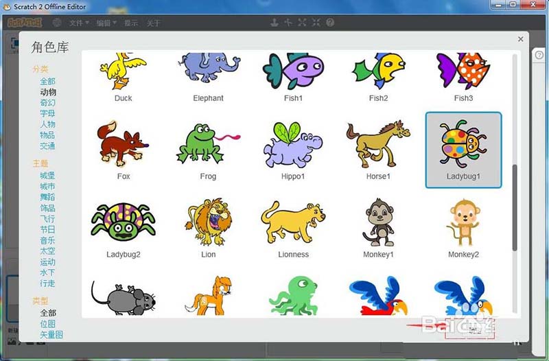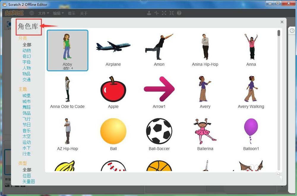 4、進入scratch的角色庫中;