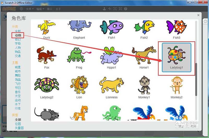 5、在分類中點擊動物,找到瓢蟲,選中它;