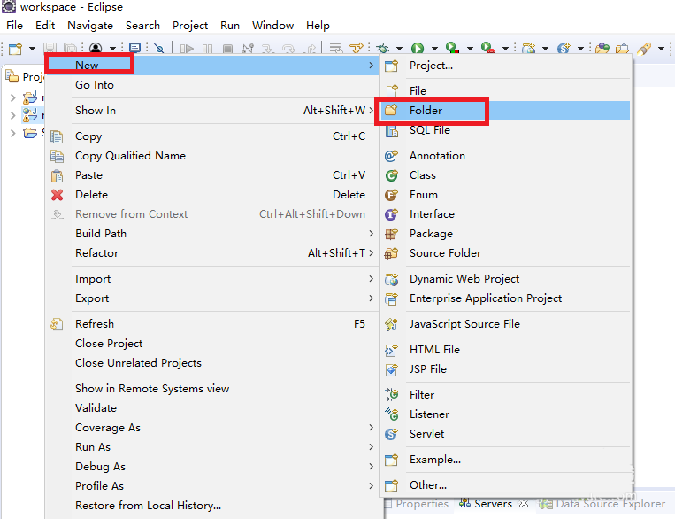 1、我們首先要下載好我們需要的json包,然后我們右擊項目,選擇“new”,點擊“folder”。