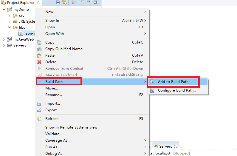 4、然后我們右擊復制進去的jar包,選擇“build path”,然后點擊“Add to build path”。
