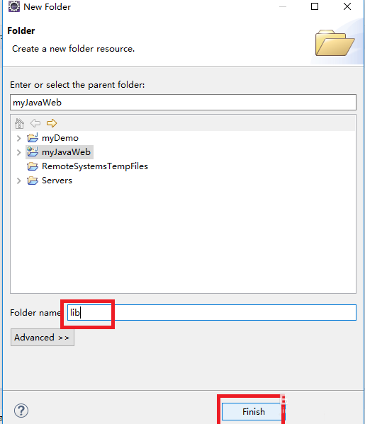 2、點擊folder后,我們填寫一下folder name,然后點擊finish,我們就新建好了一個新的文件夾。