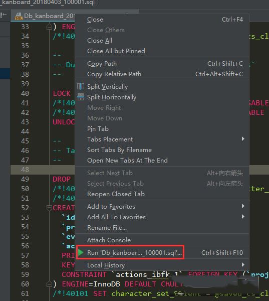 在需要導(dǎo)入數(shù)據(jù)的sql的tab上,右鍵