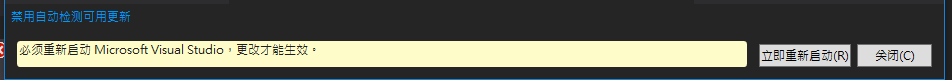 5、在原本該輸出錯誤的位置會出現以下提示,點擊重啟VS之后就可以了。