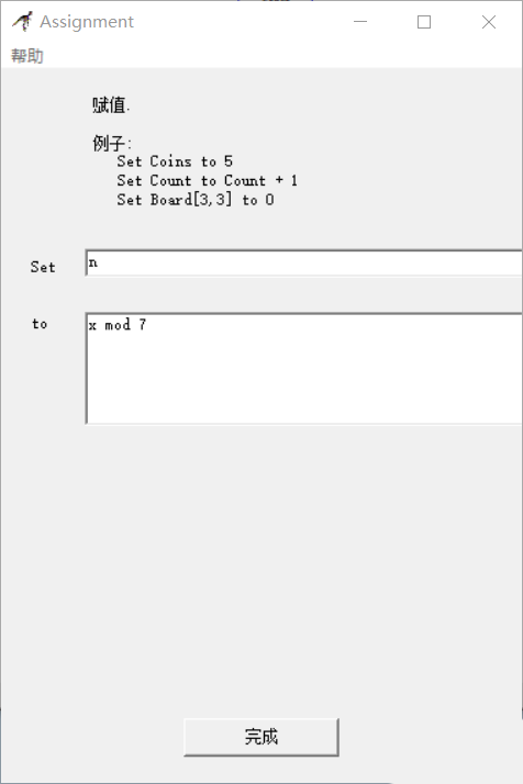 4、在賦值框1上方輸入 n 下方輸入 x mod 7