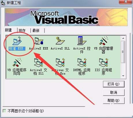 2、新建工程窗口中,選擇標(biāo)準(zhǔn)EXE選項。