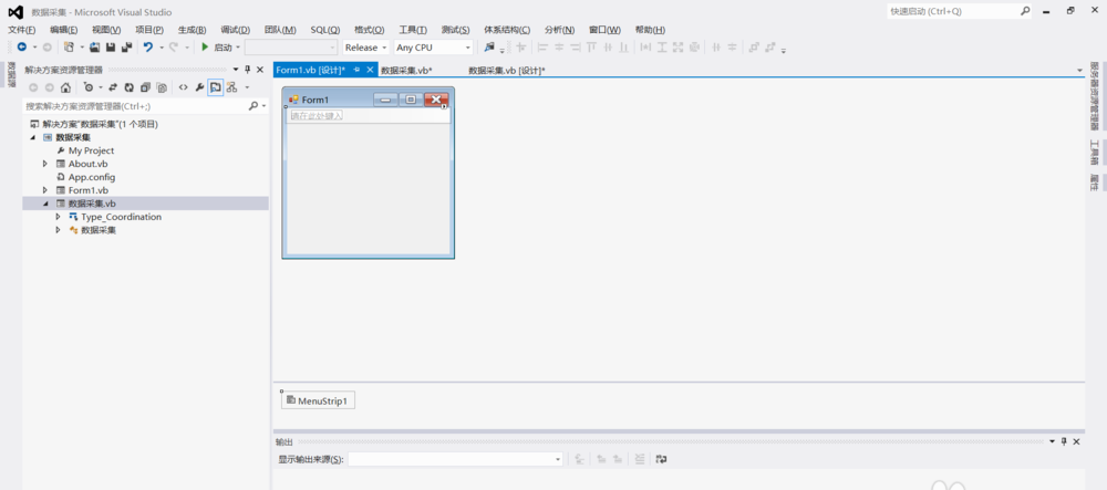 2、給新建的窗體拉入一個(gè)菜單:MenuStrip