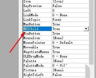 6、找到MDIChild屬性,設(shè)置為TRUE。