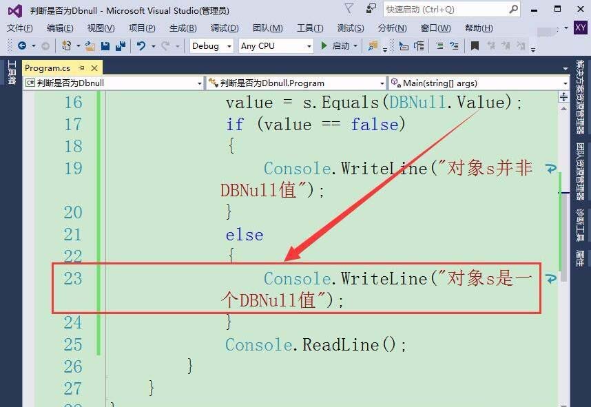 7、最后,當(dāng)條件不成立時(shí),即值為真時(shí),則輸出對象s是一個DBNull值。