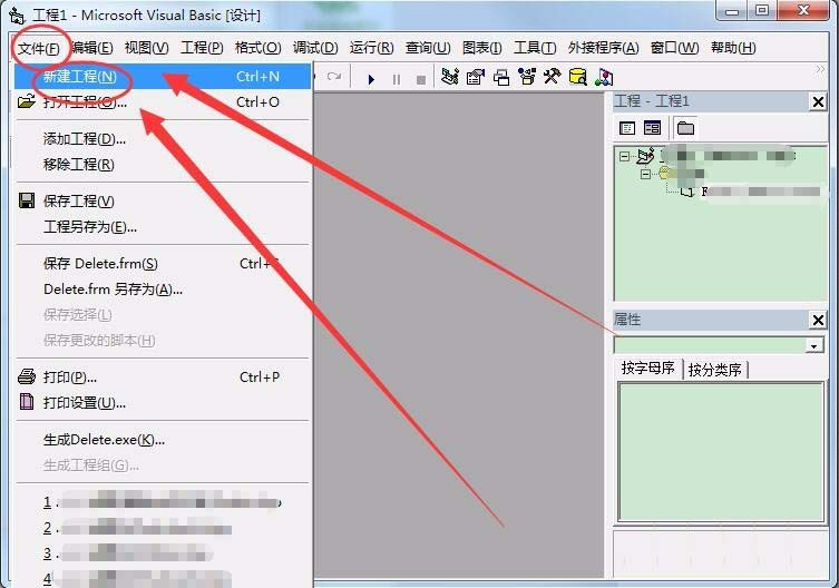 4、打開VB軟件,單擊文件菜單中的新建工程選項,新建一個EXE工程。