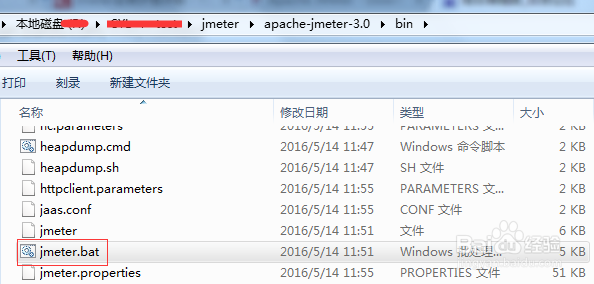 雙擊Jmeter解壓路徑(apache-jmeter-3.0/bin)的bin下面的jmeter.bat,如下圖