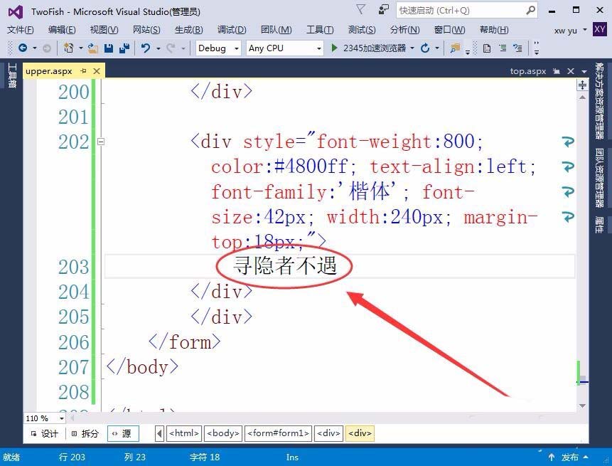9、不要忘了在div標簽中插入文本,本例為尋隱者不遇。