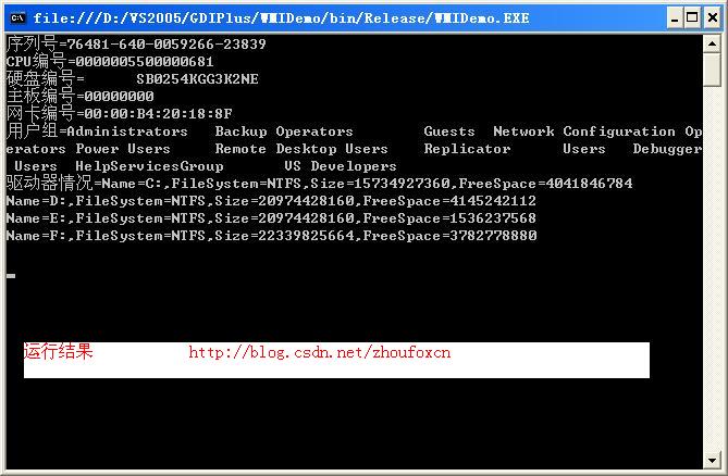 最后說明:雖然絕大部分Windows操作系統已經安裝了WMI(根據微軟官方說法是自WinME以后的Windows系統包括WinME都安裝了),但是不能保證上面的代碼能在所有的Windows操作系統之上,如Win95之類,如果在不支持WMI的Windows系統上運行WMI,那么需要從MSDN下載WMI。