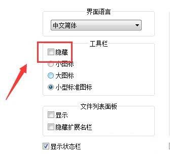 6、點擊之后,如下圖所示,在右邊找到“工具欄”,在工具欄找到“隱藏”,取消隱藏前面小框的勾選;
