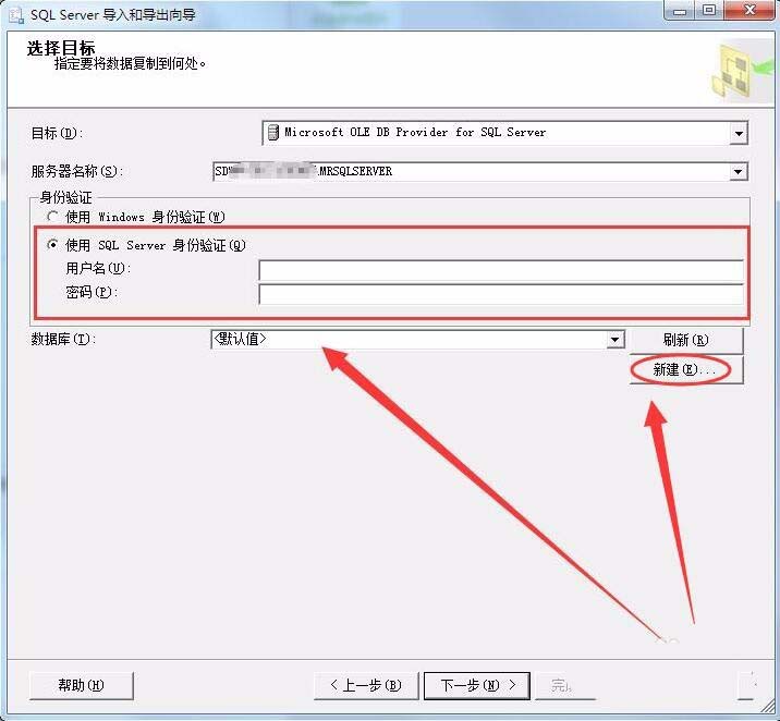 7、選擇使用SQL Server身份驗(yàn)證,輸入用戶名和密碼,單擊新建按鈕。