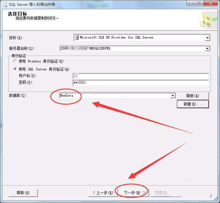 9、可以看到在數(shù)據(jù)庫選項(xiàng)中,多出了一個(gè)NewData的名稱,單擊下一步。