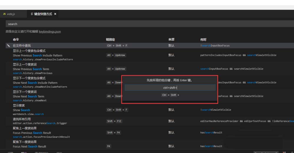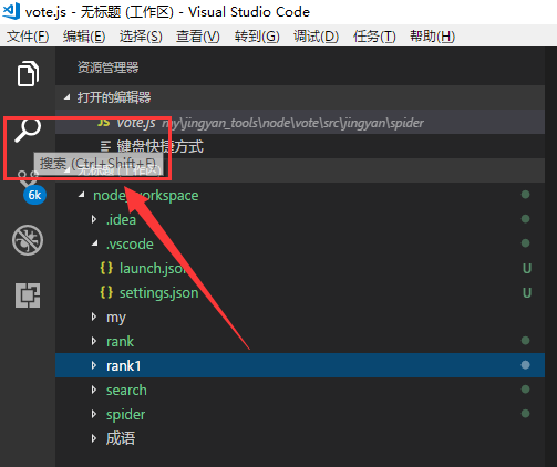 6、輸入search,按回車,第一個就是ctrl+shift+f,全局搜索