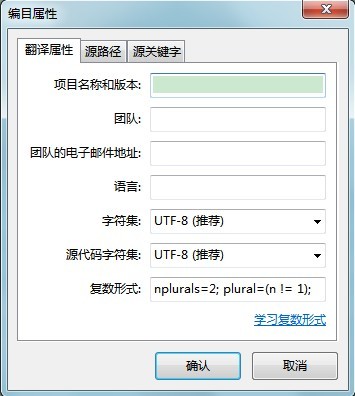 值得注意的是,表單「復數形式」默認可以不填寫,但是如果需要翻譯的文字中有復數形式的話,可能導致程序出錯。因此建議將復數形式填寫為: