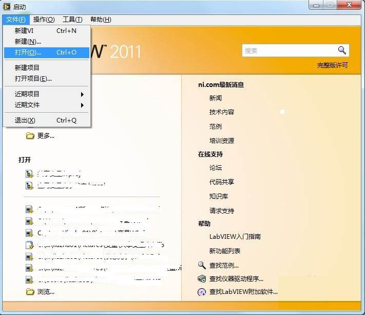 2、1)打開LabVIEW2011;2)選擇文件菜單-打開...,打開之前LabVIEW2016編輯的VI程序;3)此時是無法正常打開的;