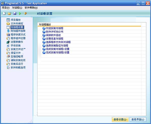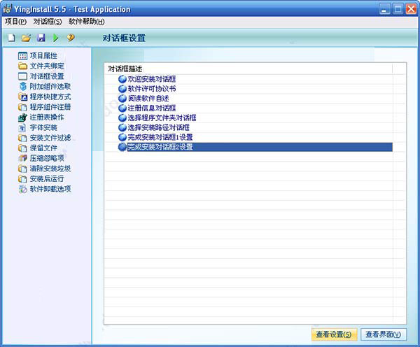 5、對(duì)話框設(shè)置,在這里你可以設(shè)置執(zhí)行安裝程序時(shí)哪些對(duì)話框會(huì)被顯示,同時(shí)可以查看界面的效果圖。