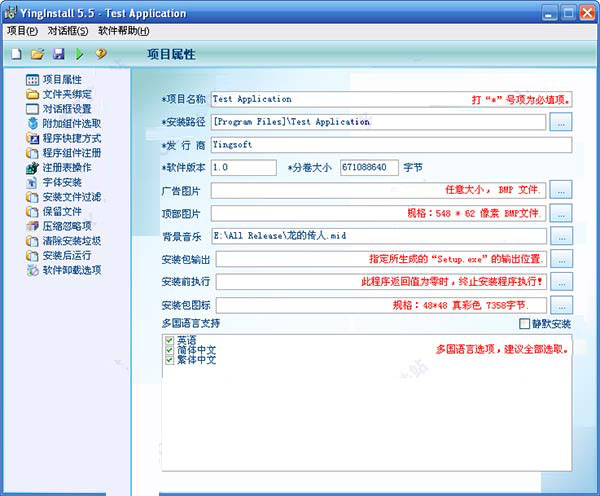 3、設(shè)置安裝項(xiàng)目基本屬性。