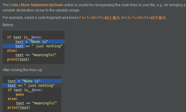 12.代碼移動語句 向上/向下 操作對于重新組織文件中的代碼行非常有用,例如,使變量聲明更接近變量用法。