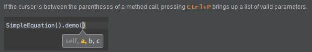 13.如果光標位于方法調用的括號之間,按下Ctrl + P將彈出一個有效參數列表。