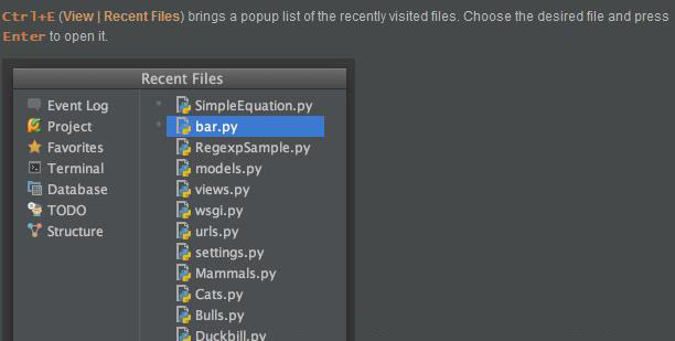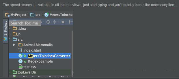 7.你可以使用Ctrl + F12(查找|文件結構)在當前編輯的文件中快速導航。它顯示了當前類的成員名單。 選擇要導航到的元素,然后按Enter鍵或F4鍵。要輕松找到列表中的項目,只需輸入其名稱即可。