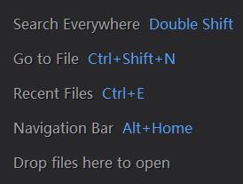 1.To open any class in the editor quickly, press Ctrl+N (Navigate | Class) and start typing the name of the class. Choose the class from a drop-down list that appears.