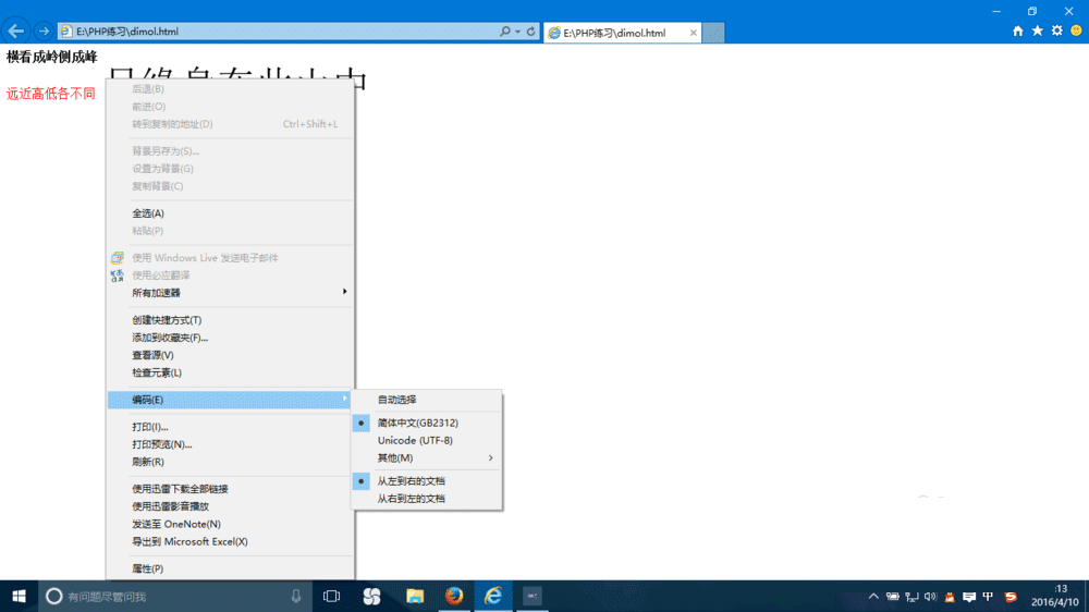 5、使用IE瀏覽器的時候,我們可以點(diǎn)擊鼠標(biāo)右鍵,就會看見編碼選項(xiàng),到時候就可以自己選了。其實(shí)在editplus編程時使用GB2312就可以差不多了,