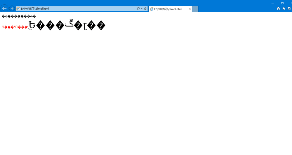2、此時用ie瀏覽器查看網(wǎng)頁顯示的漢字為亂碼,不是正常顯示的漢子。大家會有困惑,為什么會這樣。其實(shí)是editplus的漢字編碼與瀏覽器的編碼不是相同的,這就導(dǎo)致了亂碼。下面說解決方法。