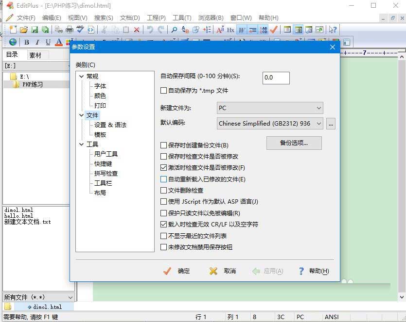 3、在editplus的功能欄中有一個工具選項(xiàng)。工具→參數(shù)設(shè)置→文件→默認(rèn)編碼。默認(rèn)編碼有好多種,一般用的就是UTF-8,還有就是Chinese Simplified (GB2312),GB2312就是簡體中文編碼。咱們一般用的就是GB2312就行了。