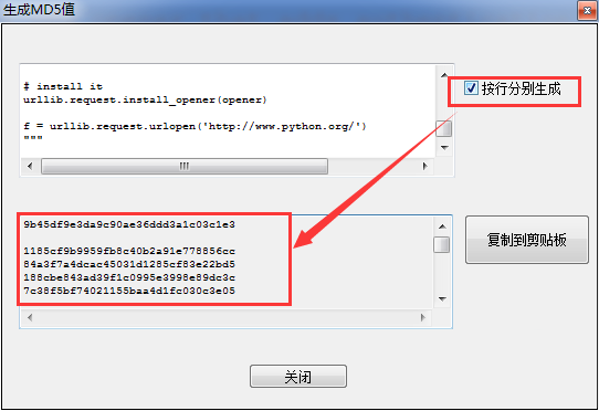 5、如圖,還可將“按行分別生成”勾選上,即可將每行的MD5生成。