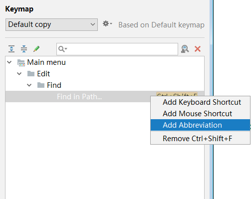 5、雙擊搜索結果的一行,可以設置快捷鍵。第一行是新增快捷鍵,第二行是新增鼠標快捷鍵,第三行是新增簡稱,在雙shift搜索中用到,第四行是移除已有快捷鍵等。