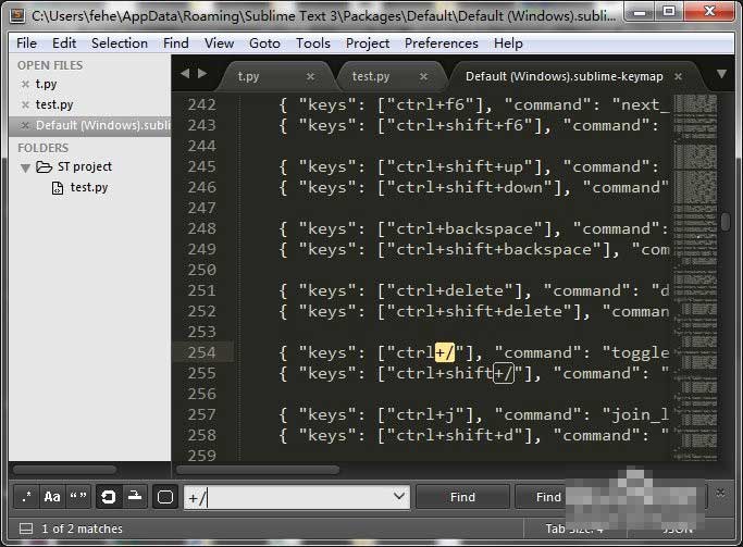 sublime text 3快捷鍵設置
