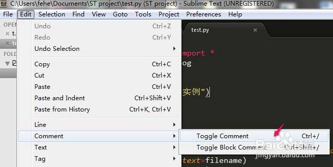1、筆者在工具欄菜單頁面找到了注釋的快捷鍵,然后嘗試使用快捷鍵注釋代碼。發現失效。代碼無動于衷~