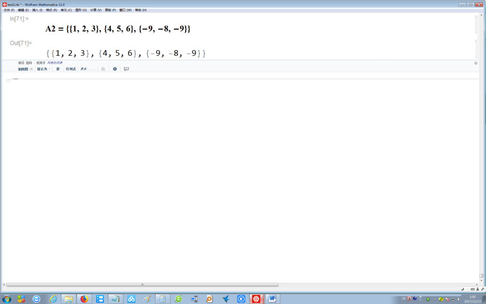 3、定義一個3階矩陣:在Mathematica的命令行中,輸入A2={{1,2,3},{4,5,6},{-9,-8,-9}},然后按Enter+Shift
