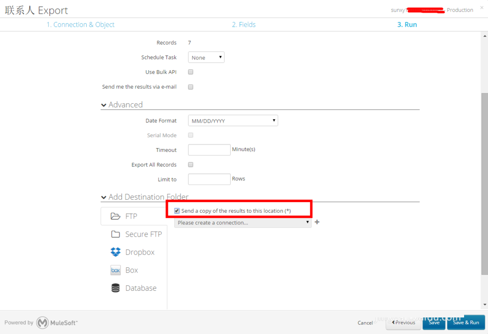 7、這里可以選擇我們需要導出的屬性,全選吧,再下一步,顯示導出的記錄信息。兩個高級,一個可以定義導出記錄中日期格式、記錄數和超時時長。另一個可以將導出文件備份到指定的目標服務器上。