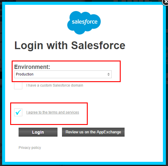 3、不是在salesforce中安裝,而是跳到一個新的頁面,使用salesforce賬號登陸,選擇環境,勾選同意