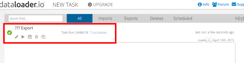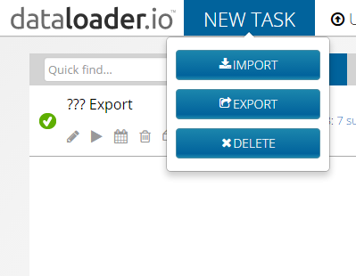 4、登陸成功,進入了dataloader的界面,在右上角可以看到我們salesforce的賬號中間的提示,點擊 new task按鈕