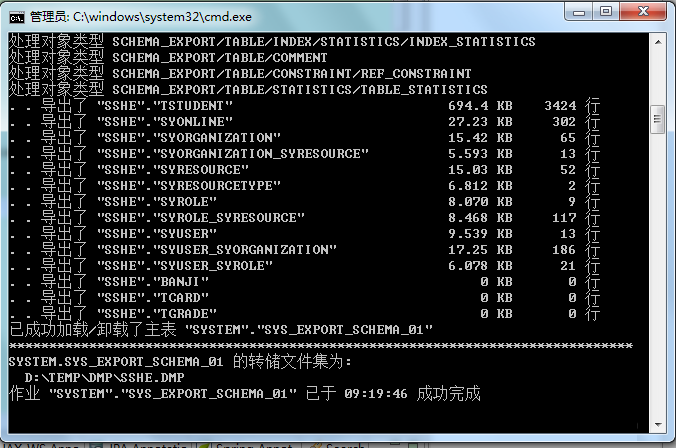 expdp sshe/sshe directory=DIR_DP dumpfile=%backupfile% logfile=%logfile% schemas=sshe parallel=4