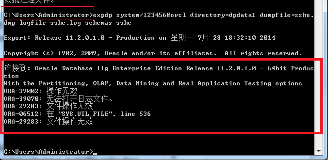 5、上面報(bào)了一個(gè)錯(cuò)ORA-39002:操作無效